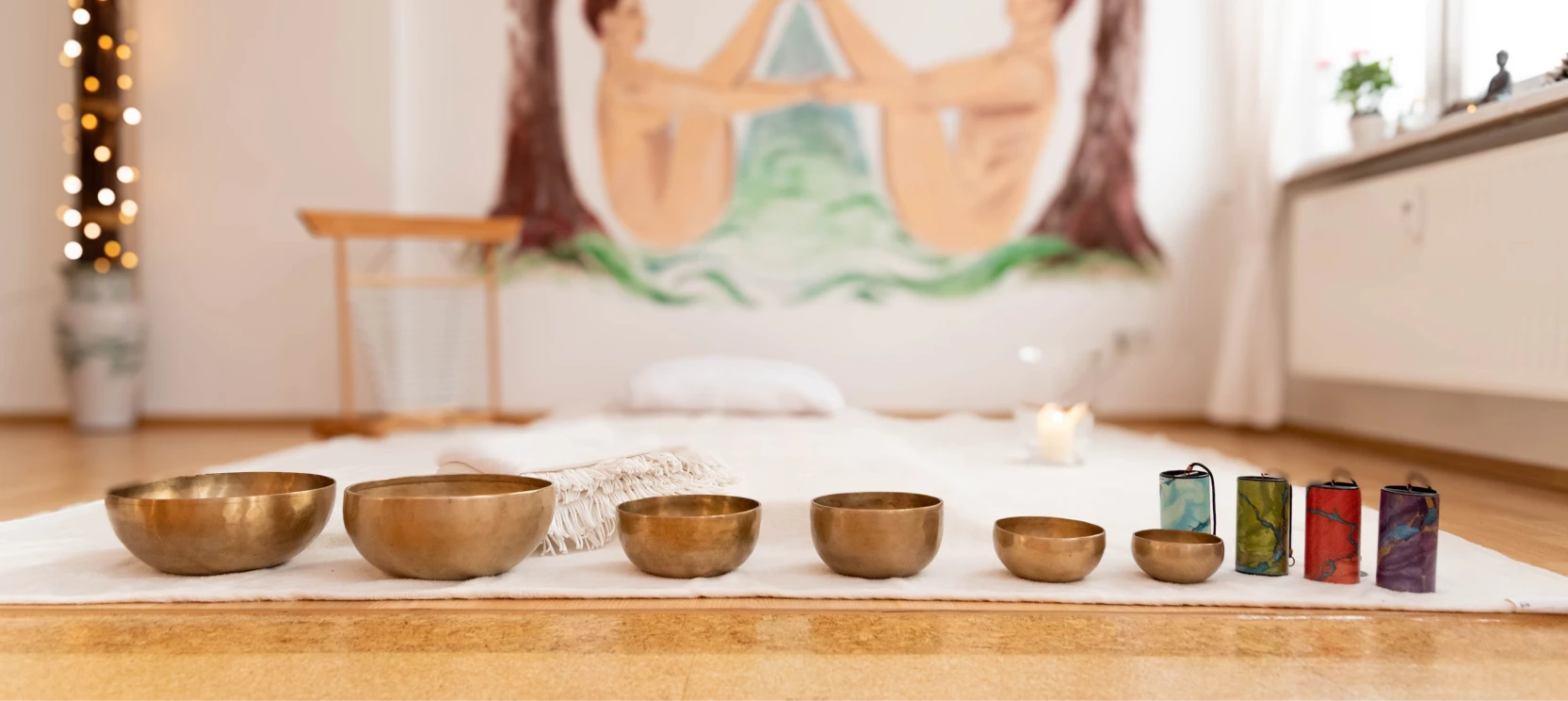Bei Yoga Harmonie in Markranstädt schenke ich dir genau diese tiefe Form der Regeneration: die Klangtherapie mit Chakren – Klangschalen.